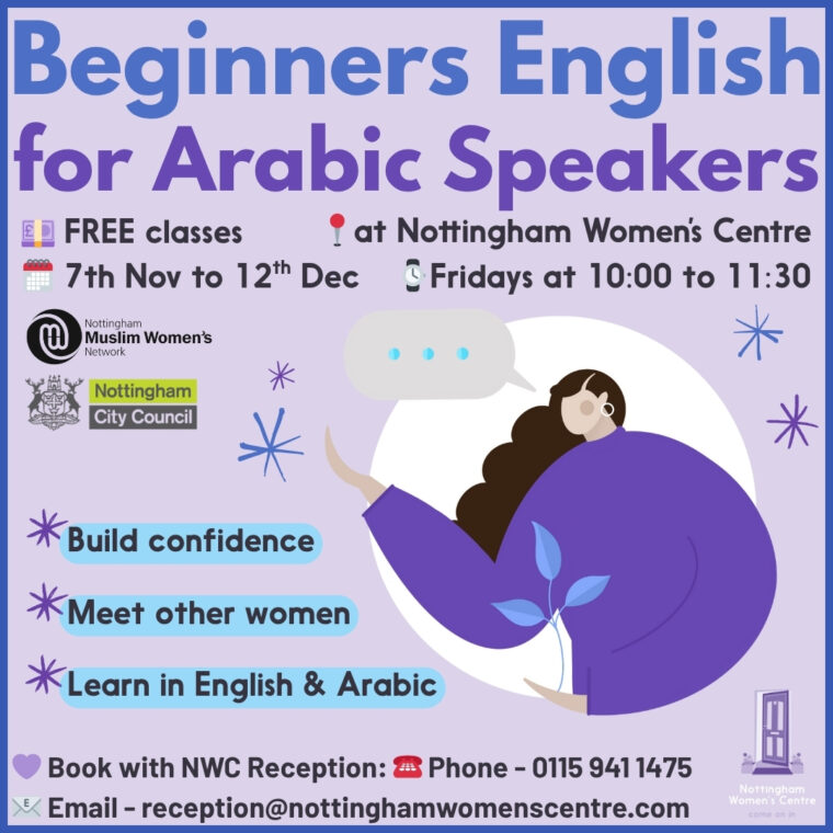 للتسجيل: راسلي مركز المرأة على البريد الإلكتروني reception@nottinghamwomenscentre.com أو اتصلي على الرقم ٠١١٥٩٤١١٤٧٥